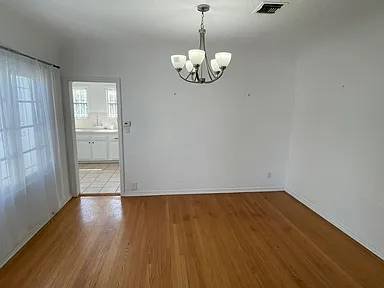 A delightful 1,150 square foot single-family residence in the Spanish style is available for lease. The monthly rent is $3,150, based on a standard 12-month agreement. This home offers two bedrooms and one bathroom, featuring a central air conditioning and heating system. The kitchen is equipped with a modernized stove, refrigerator, and oven.