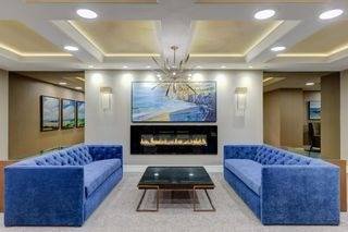 - Expansive lobby featuring a wall fountain, illuminated artwork, a coffee bar, waiting areas, and a connected lounge.
