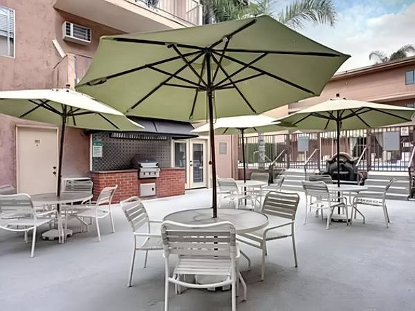 This access-controlled building features a year-round heated lap pool complemented by attractive patio furniture for relaxation. Additional amenities include an outdoor BBQ area, an on-site gym, laundry facilities, and secured parking. The location offers convenient proximity to UCLA, Culver City, Santa Monica, and Beverly Hills.