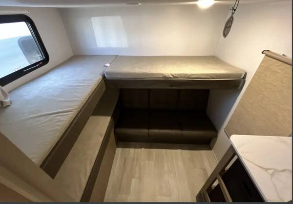 An additional two guests (for a maximum of eight total) can be hosted using the sleeper sofa in the living area. The unit includes a full kitchen and bathroom. This brand-new trailer will be in pristine condition for its first guests.