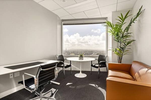 This is a full-service executive suite featuring exceptional common areas, including a welcoming lobby, a fully equipped kitchen, and professionally serviced conference rooms. Furthermore, our on-site professional staff is available 40 hours per week to manage your calls, welcome your clients, and provide any necessary office support.
