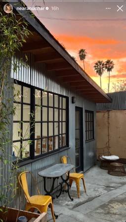 The property offers a quiet and peaceful atmosphere with access to outdoor areas. It features a two-room artist studio divided by a pocket door, situated on the ground level. The location is convenient, approximately 10 minutes from downtown Los Angeles or Highland Park. Other artists are present on the premises.