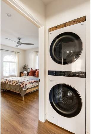 This is a standalone front unit within a duplex, featuring an in-unit washer and dryer, central air conditioning, brand-new appliances, and a Ring camera security system. The location is one block south of Cafecito Organico in Silverlake, with shared two-car parking available in front. The layout of the rooms and living room is open to discussion and rearrangement. The living and dining areas are already furnished as shown in the accompanying pictures. One bedroom will be available unfurnished, one bedroom will be my own, and the use of the third room can be discussed for either shared or private purposes.