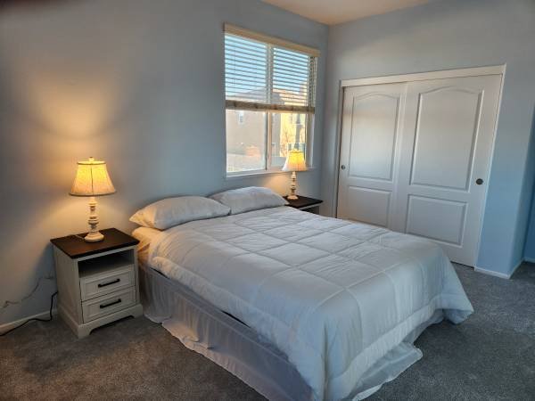 The bedroom is furnished with a queen-sized bed. An unfurnished option is also available, though the rental price remains the same.