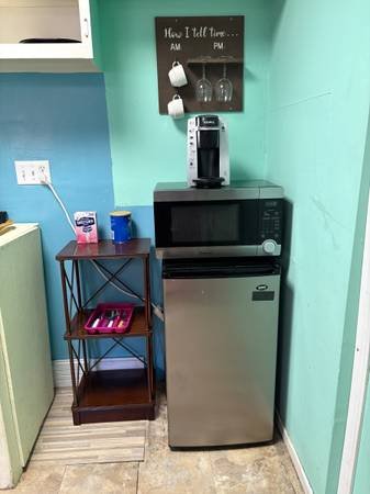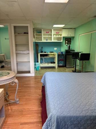 A comfortable studio apartment located in the Sun Valley/North Hollywood area. All essential amenities are provided, including a compact refrigerator and a private bathroom. Please refer to the attached photographs for further details.