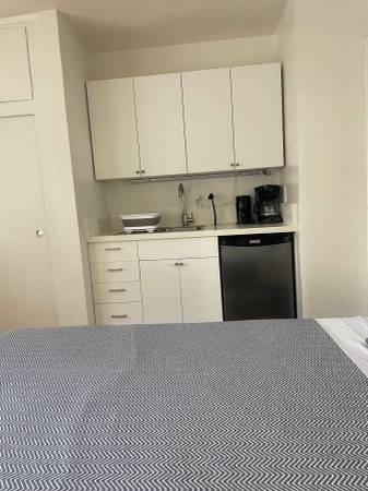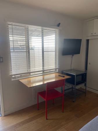 Modern furnished Studio in West Adams. Excellent central location between Downtown/Koreatown/Culver City. Just west of USC. Queen size bed, kitchenette with toaster oven, microwave, portable electric cook top, coffee machine, small refrigerator etc. Modern bathroom with shower. One guest only. $1350 per month including wifi, utilities and TV included. Free street parking in the neighborhood. No smoking. No pets. Laundry in building/on site that works with quarters. Note: This is a private residence and owners live on the property.