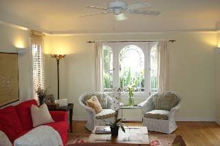 This exclusively furnished bungalow is proximate to West Hollywood, Hollywood, Beverly Hills, Downtown, Studio City, Universal City, Silverlake, and Hollywood. It is a short distance from The Grove, approximately five minutes from Cedars-Sinai Hospital and Kaiser Hospital, which is ideal for traveling nurses. The location is also near the Farmers Market, Hollywood and Highland, Paramount Studios, Universal Studios, The Lot production offices, and the Bronson and Raleigh Studios.