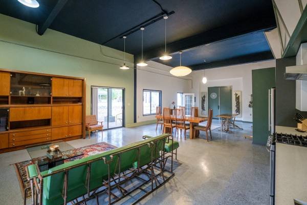 This furnished loft apartment offers generous space and high cathedral ceilings, situated within a distinctive, tree-enclosed setting in the Sherwood Forest area near California State University, Northridge.