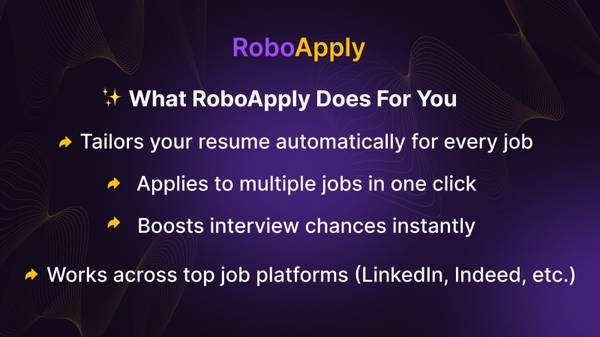 RoboApply is an artificial intelligence service that submits applications to numerous job openings within minutes, utilizing fully customized resumes. It also features an Interview Copilot, which provides real-time answer suggestions during interviews.