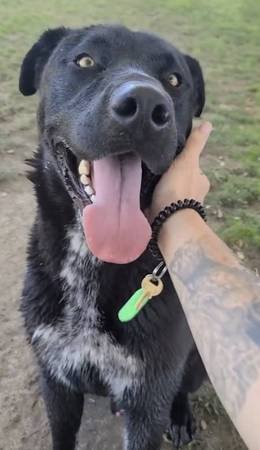 4 years old, Male, Lab/Aussie/Shepherd Mix. He is playful, affectionate, and eager to learn. Axel is high-energy, loving, and athletic. He gets along well with other dogs, is leash trained, and housebroken. He can become mouthy during playful overexcitement and experiences some separation anxiety; he may not be the best match for first-time dog owners. \"He simply needs someone who will be patient and consistent. Axel is intelligent, responsive, and craves stable care and routine.\"