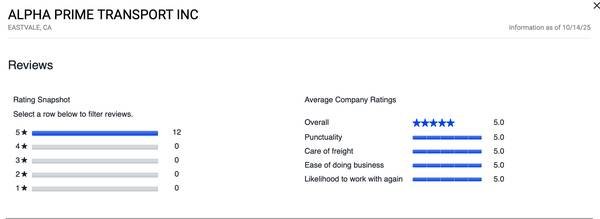 - Superior carrier rating that brokers appreciate.