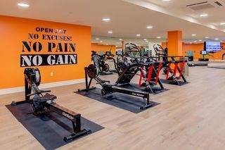 - Three spacious fitness centers with cardio, strength training, and Pilates sections.