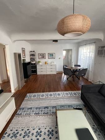 It features hardwood floors throughout. The kitchen, bathroom, and laundry room have all-new flooring. The bathroom has a new vanity and tub. The entire home has been thoroughly refreshed and feels revitalized. Please note, some photographs depict the previous bathroom and kitchen—both spaces now appear significantly newer and fresher.