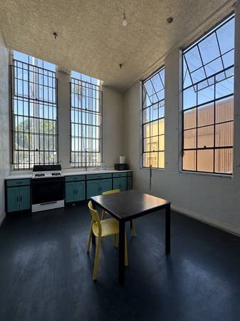 The spaces receive tons of natural light, making them ideal for a photography studio, a painting studio for USC students, woodworking, crafts, ceramics, fashion design, or other creative endeavors. With beautiful warehouse-style windows, separate office areas, and bathrooms, it would also suit a small company, a storage-based business, set design, fashion manufacturing, or art studios.