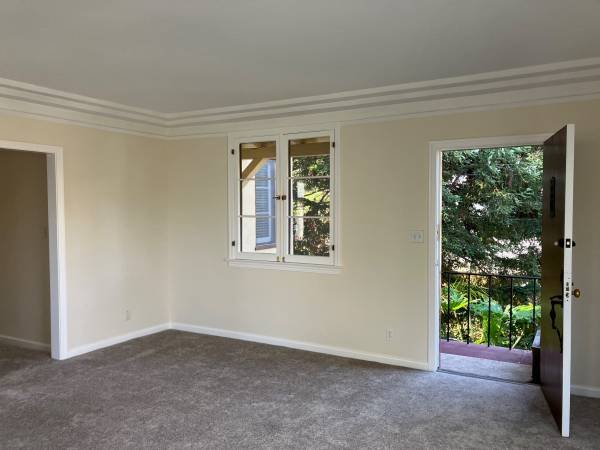 This home includes three generously sized bedrooms, each with elegant vintage French windows. Fresh carpeting has been installed throughout, and the kitchen features new faux-wood cork flooring. All bedrooms are equipped with attractive faux-wood blinds. Both bathrooms retain their original 1930s tilework, adding historic character.