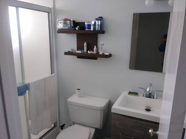 The monthly rate is $1500, with a weekly option of $450. The private bathroom is included, and tenants have full access to the kitchen. The residence features wood flooring throughout and includes WiFi internet.