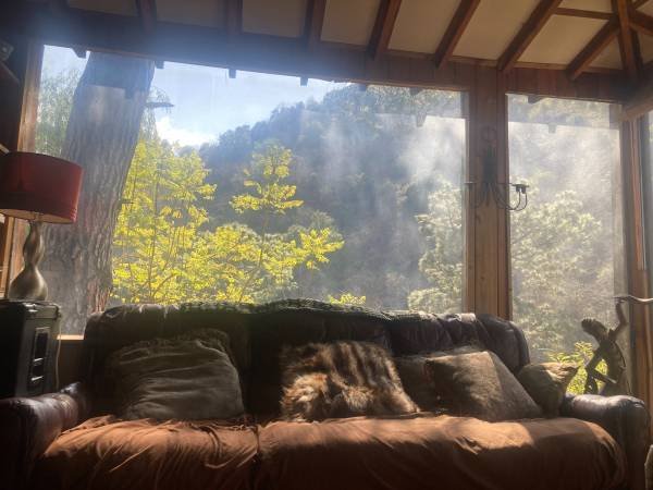 - The cedar walls impart a scent reminiscent of a Big Bear cabin.