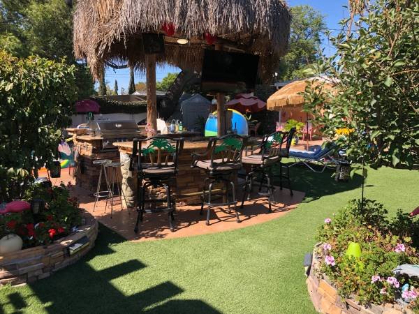 Relax and unwind at this distinctive and peaceful sanctuary. Our outstanding reviews speak for themselves. This is a truly remarkable private guest cottage, complete with a tiki bar and grill, a swimming pool, and patio furniture.